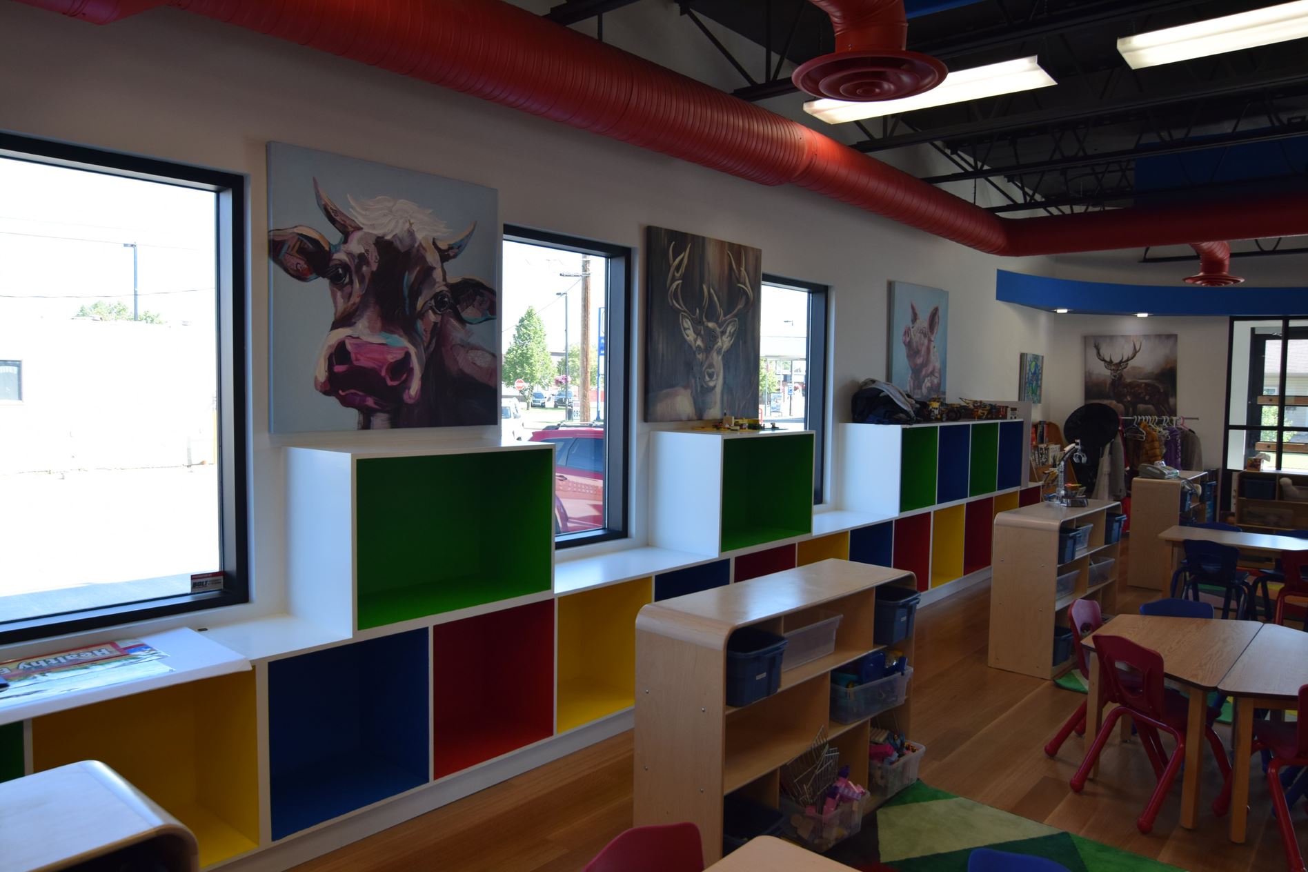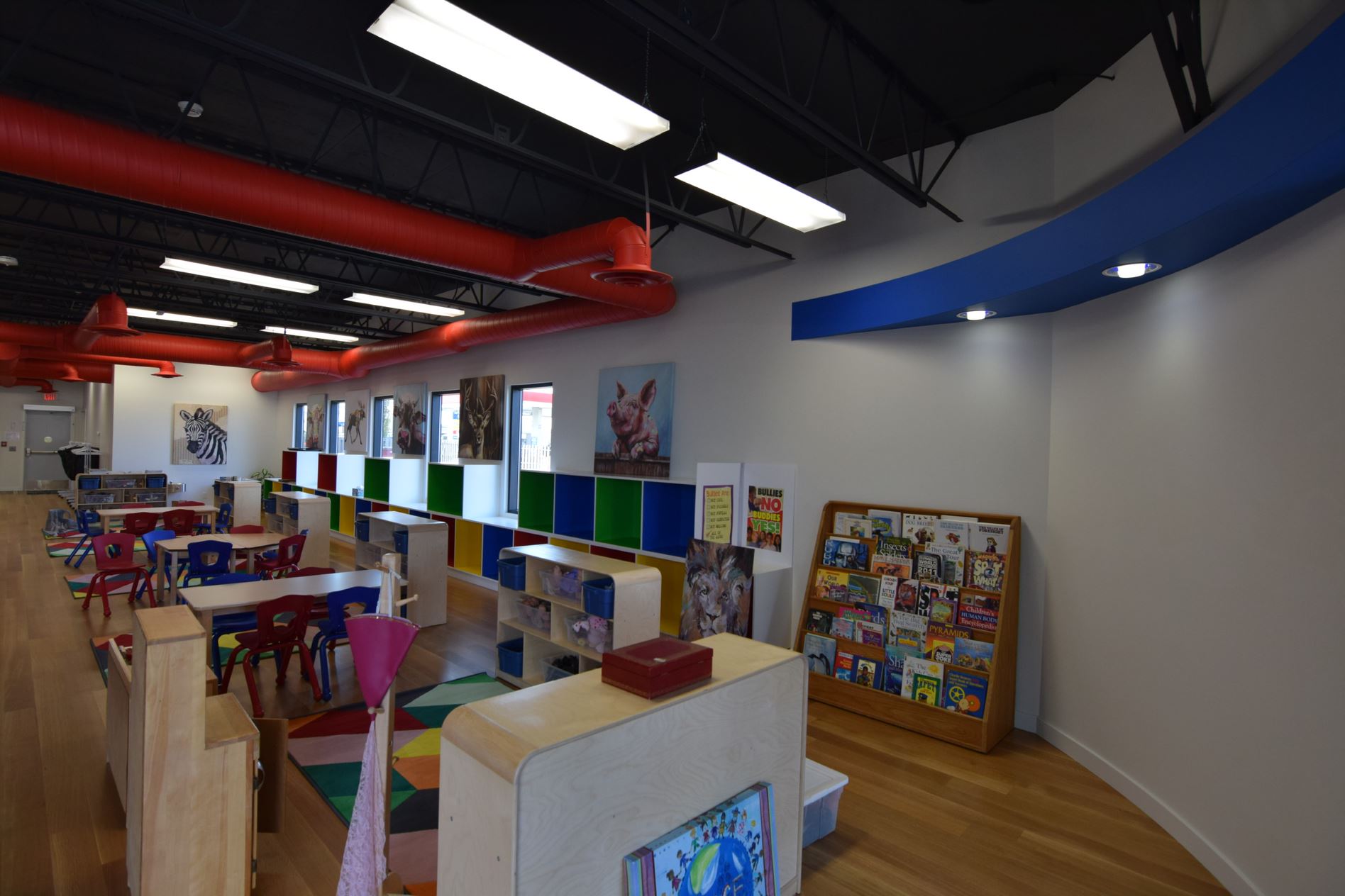 The new daycare provides 6,000 ft2 of vibrant rest, eat, and play areas, as well as a media space for older children. The facility is also equipped with a kitchen, laundry room, and office space for staff.
