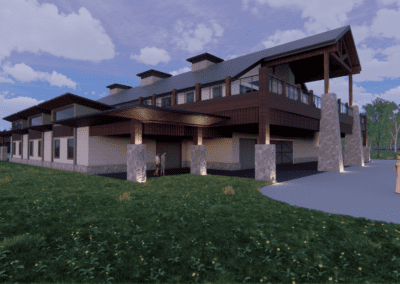 The second storey, consisting of a master bedroom and three additional bedrooms, looks out onto the sport activity hall on the main floor from a daylit mezzanine. The kitchen, dining and living room spaces opens onto a sun room and two covered decks, which creates visual connectivity between all three spaces and demonstrates how to seamlessly combine cooking, dining, and living spaces.
