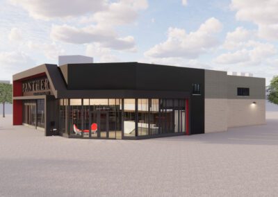 Located on the tail end of Whyte Avenue, Edmonton’s celebrated arts and cultural district, Panther Health and Wellness Centre is a welcome addition to Old Strathcona’s plethora of unique local boutiques, bespoke art galleries and trendy cafés and restaurants. Formerly known as the home of Scona Cycle, the building will be getting a much-needed makeover that will energize its surroundings with a bold design and a fun pop of colour to a corner of 82nd Avenue that boasts huge curb appeal. Throughout the design phase, the VOSH team worked closely with our Clients, who brought a number of exciting ideas to the table. Together, we left no stone unturned and the result of this powerful synergy is a vision that speaks to our Clients’ approach to empowered healing, health and wellness.