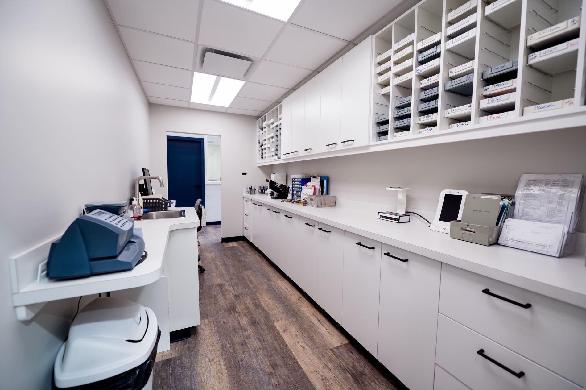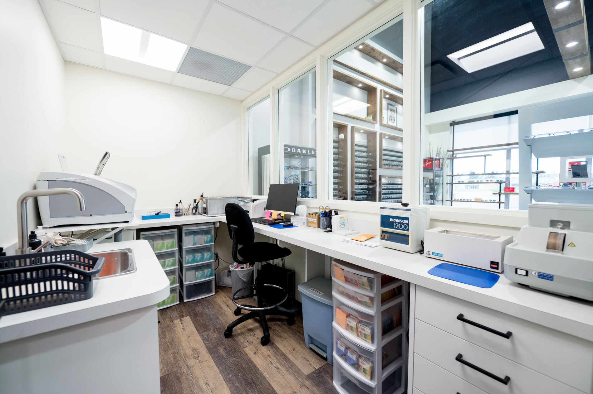 For this design-build project, we worked closely with our Client and the General Contractor to ensure that the vision for this tenant improvement was carried through from start to finish. What was once a ‘cold shell’ space has now been transformed into a modern clinic consisting of a reception area with a designated children’s play area, six pre-exam/exam rooms coupled with two laboratories, an office, staff lounge, and ample display spaces.